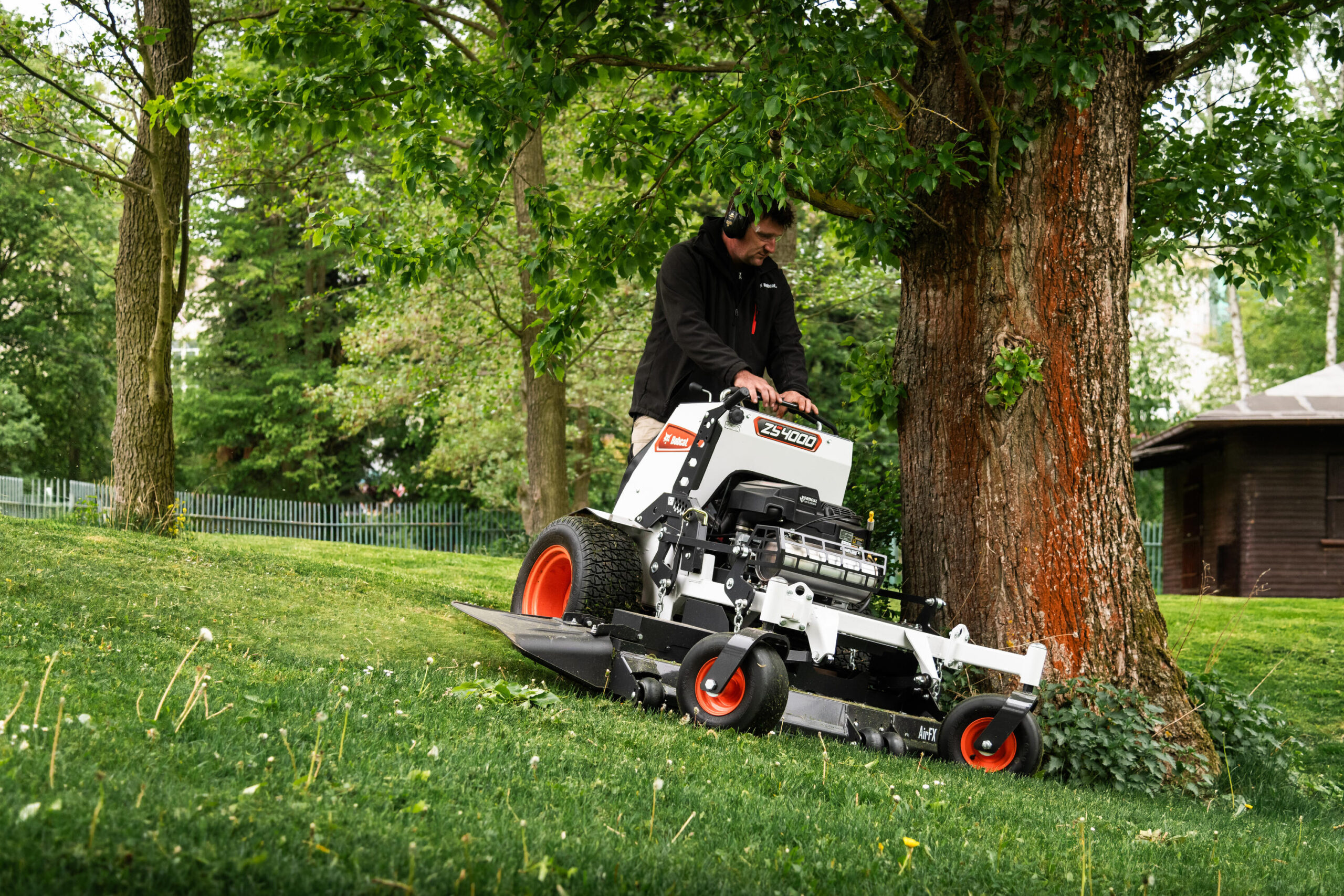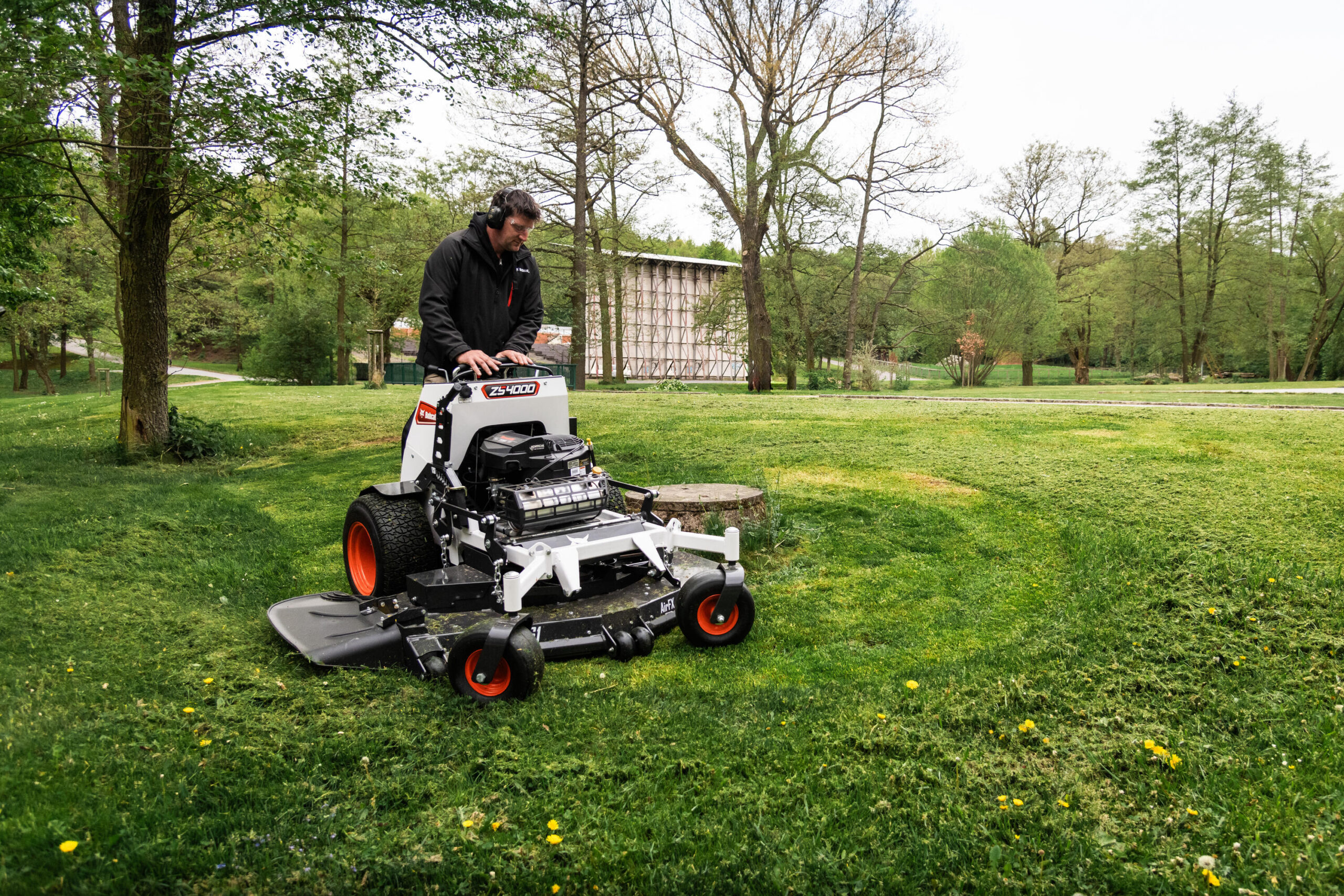 Kosiarka stojąca ZS4000 z mocnym silnikiem i wytrzymałym układem napędowym zapewnia niezrównaną zwinność i zwrotność, pozwalającą na omijanie przeszkód i pewne poruszanie się po nawet bardziej skomplikowanych miejscach pracy.
