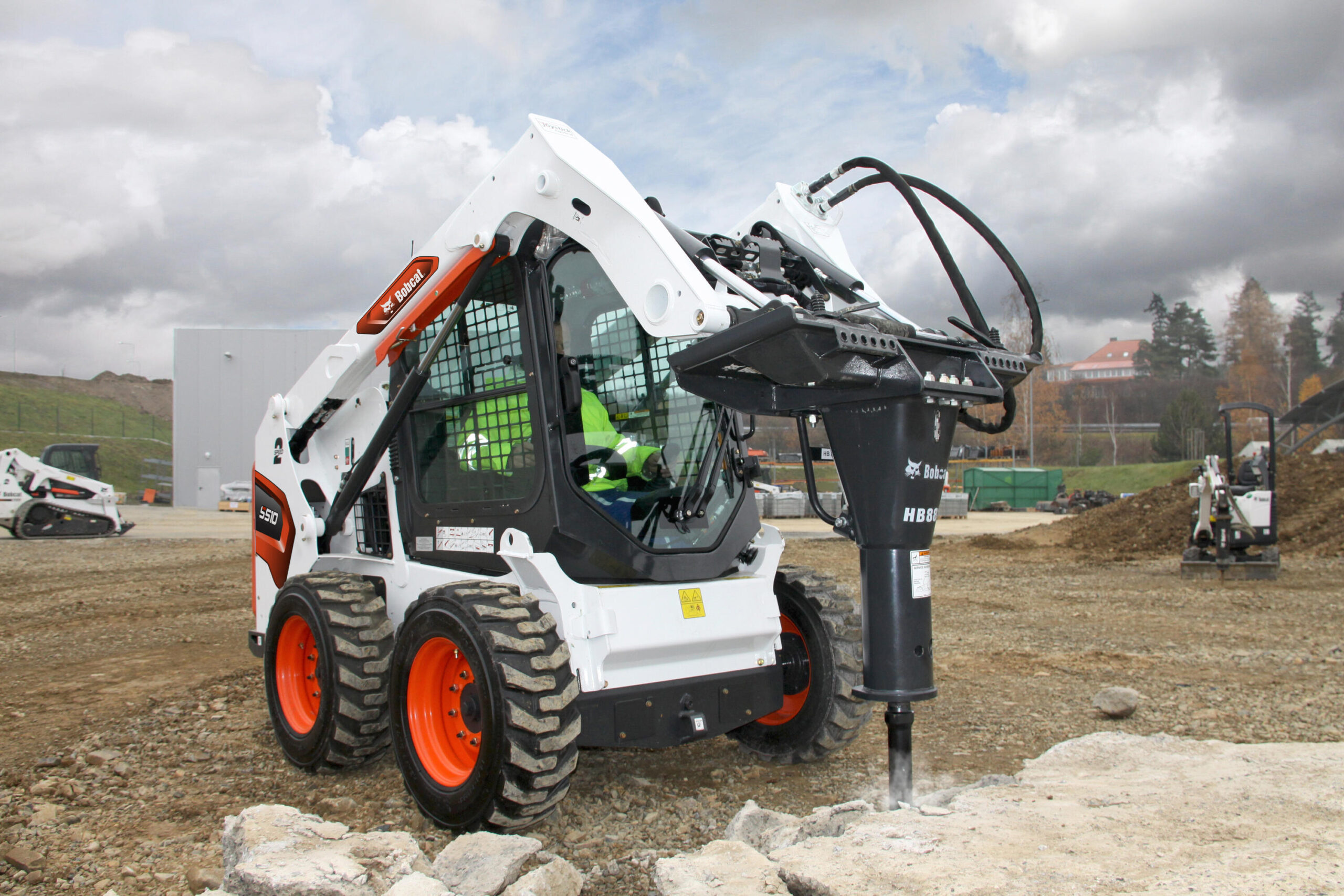 Kompaktowa ładowarka Bobcat S510 o sterowaniu burtowym to pierwszy model w popularnym rozmiarze ramy 500, jest to bardzo częsty wybór do robót ziemnych.